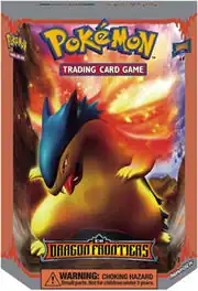 The Shadow Blaze Theme Deck from the EX Dragon Frontiers expansion of the Pokémon Trading Card Game predominantly focuses on Fire-type and Psychic-type Pokémon. Each Theme Deck is packaged with a 60-card deck, damage counters, a custom coin, a rulebook, a card list, and a single-player mat.