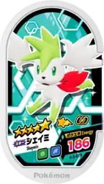 Shaymin (Japanese: シェイミ Shaymin) is a Grade 5 Pokémon Mezastar tag. It is part of the fifth Gorgeous Star set.