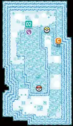 Shoal Cave is a cave north of Mossdeep City. This cave was carved into the side of a rocky mountain rising from the ocean. At predetermined times of the day, every six hours, the tides rise or fall. During high tide, the cave floods, allowing the player to use Surf to access levels of terrain otherwise out of reach on foot. Conversely, during low tide, the receding waters allow the player to descend to levels that would otherwise be underwater, most notably the ice floor at the lowest level in the cave. This icy room contains the Never-Melt Ice, and can only be accessed if the player has Strength, or the Mach Bike in Omega Ruby and Alpha Sapphire. Near the entrance to the icy area is a Black Belt who gives away a Focus Band.