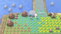 Route 224 is a narrow peninsula on the same island as Victory Road, stretching to the east. It is described as a miniature of the Sinnohregion. At its end is a white rock. If the player has the event itemOak's Letter, Professor Oak will be present here, revealing that a similar rock has been found in Kanto and asking the player to write the name of someone they feel gratitude for on it. Doing this causes the end of the route to become covered in flowers and unveil the Seabreak Path. This allows the player to access the Flower Paradise and catch the Mythical PokémonShaymin.
