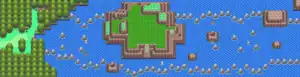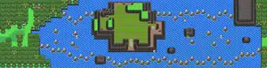 | A sea route that stretches from west to east. There is an island that is rich with plant life along the way.