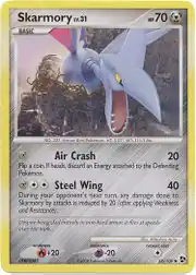 Steel Wing is a move in the Pokémon games that Skarmory can learn. This card's Pokédex entry comes from Pokémon Diamond and Pearl.