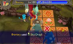 Braviary grabs the opponent with his talons and lifts them high into the air. He then speeds downwards and tosses the opponent onto the ground. | ||