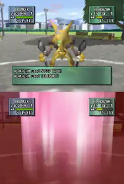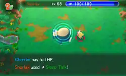 When the user is asleep, Sleep Talk will use a randomly selected move from its moveset. In the Rescue Team and Explorers series, the move will automatically be used if the Pokémon is asleep and attacked. When triggered, the user will face in the attacker's direction and use one of its moves (including itself, in which case it will fail). Any links the selected move has are ignored. Sleep Talk is unaffected by the cowering and cringing status conditions, but is affected by the Muzzled status condition. This move will be picked only if the user does not have Snore in their moveset. This move is counted as Pokémon's most recent move only if it was used manually.