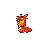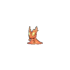Slugma is a limbless gastropodmolluskPokémon composed of magma. Its body is bright red, fading to a duller red along its extremities. It has large, round, yellow eyes with small pupils. Slugma's head is ovoid with flame-like extensions spreading upward from its eyes and round, stable drops of magma dangling from its upper jaw. Its lower body is irregular in shape, and occasionally emits bubbles.