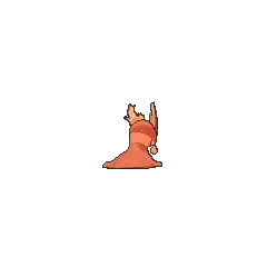 Slugma's circulatory system is composed entirely of magma, which delivers vital nutrients and oxygen to its organs. To prevent its body from cooling and hardening, Slugma neither sleeps nor ever stops moving. If its body does begin to cool, it will become brittle and may break apart. Slugma constantly seeks warm places and gathers with other members of its species in mountains and volcanoes. Slugma takes magma baths to heal itself. It is believed that when volcanoes were more active in ancient times, Slugma were seen more often.