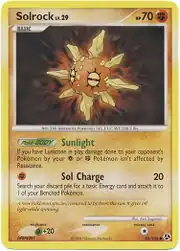 Solrock (Japanese: ソルロック Solrock) is a Fighting-type Basic Pokémon card. It is part of the Great Encounters expansion.