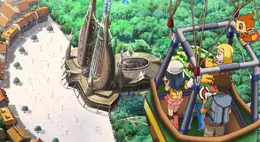 The Space-Time Towers (Japanese: 時空の塔 Space-Time Towers) are two animated series-exclusive buildings located in Alamos Town, Sinnoh. They first appeared in A Secret Sphere of Influence, albeit as a diorama in the Eterna Historical Museum, and then had a major role in The Rise of Darkrai. The Space-Time Towers were designed by Godey and constructed a century ago. Besides being buildings, they are the largest musical instrument in the Pokémon world.