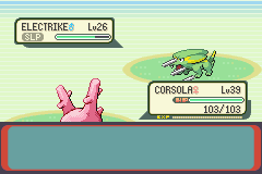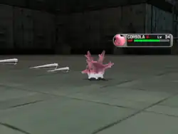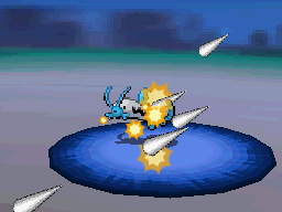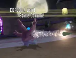Corsola glows white, points all of its coral branches at the opponent, and fires multiple white spikes from them. Sometimes, the glow just outlines Corsola's body. | ||