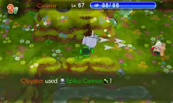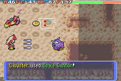 Spike Cannon inflicts damage, hitting the target 2-5 times per use. Each hit has a separate accuracy check, though the move will continue even when a hit fails. Prior to Super Mystery Dungeon, if a targeted Pokémon faints in middle of the attack, the remaining projectiles will be able to hit a new target. The move's critical hit rate is reduced (2% in the Rescue Team, Explorers and Adventure Squad series).