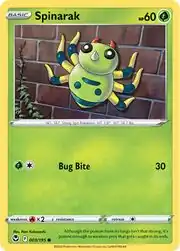 Spinarak (Japanese: イトマル Itomaru) is a Grass-type Basic Pokémon card. It is part of the Silver Tempest expansion.