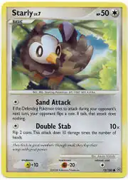 Starly (Japanese: ムックル Mukkuru) is a Colorless-type Basic Pokémon card. It is part of the Stormfront expansion.