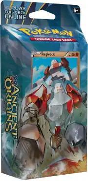The Stone Heart Theme Deck from the Ancient Origins expansion of the Pokémon Trading Card Game predominantly focuses on Grass-type and Fighting-type Pokémon. Each Theme Deck is packaged with a 60-card deck, damage counters, a custom coin, a rulesheet, a card list, a deckbox, a two-player mat, and a TCGO code card.