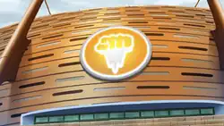 The Stow-on-Side Stadium first appeared in Glittering!! The Tapestry in the Vault, where Henry was the first one of remaining Gym Challengers to challenge it. During his match against Allister, Henry heard the voice of his deceased father talking to him from GigantamaxGengar's mouth. The match ended in Henry's clear victory, with Allister failing to defeat a single one of his Pokémon. Casey's match was initially delayed due to Allister running off to inspect Professor Magnolia's Sinistea and Polteageist, but she was eventually able to have it and win herself a Ghost Badge as well.