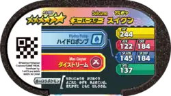 Suicune (Japanese: スイクン Suicune) is a Grade 6 Pokémon Mezastar tag. It is part of the second Gorgeous Star set.