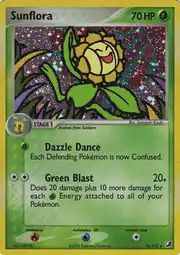 Sunflora (Japanese: キマワリ Kimawari) is a Grass-type Stage 1 Pokémon card. It is part of the EX Unseen Forces expansion.