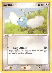 Swablu (Japanese: チルット Tyltto) is a Colorless-type Basic Pokémon card. It is part of the EX Power Keepers expansion.