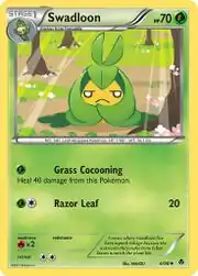 Razor Leaf is a move in the Pokémon games that Swadloon can learn. This card's Pokédex entry comes from Pokémon Black.
