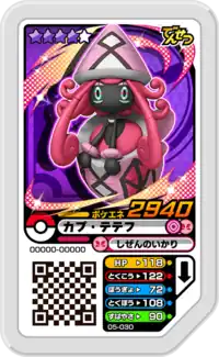 Tapu Lele (Japanese: カプ・テテフ Kapu-Tetefu) is a Grade 4 Pokémon Ga-Olé disk. It is part of the fifth set.