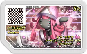 Tapu Lele (Japanese: カプ・テテフ Kapu-Tetefu) is a Grade 5 Pokémon Ga-Olé disk. It is part of the fifth set.