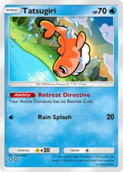 This card's standard illustration features Tatsugiri in its Curly Form. The illustration rare print also features its Droopy and Stretchy Forms, along with several Dondozo.