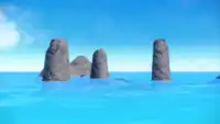 A set of rock pillars in the North Paldean Sea located off the coast of Casseroya Lake and Socarrat Trail. Daily, a Roaming Form Gimmighoul spawns behind the sign here.