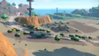 A hidden beach located at the far end of South Province (Area Five) on the shores of the South Paldean Sea. A Pokémon Center is located here. Daily, two Roaming Form Gimmighoul spawn here: one on the sign and one on a rock.