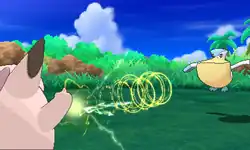 | A weak electric charge is launched at the foe. It causes paralysis if it hits. | |||