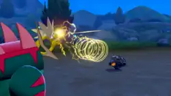 Heliolisk releases rings of yellow electricity from the tip of its tail at the opponent, paralyzing it. | ||