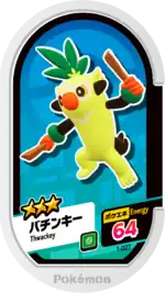 Thwackey (Japanese: バチンキー Bachinkey) is a Grade 3 Pokémon Mezastar tag. It is part of the first set.