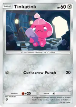 Tinkatink (Japanese: カヌチャン Kanuchan) is a Metal-type Basic Pokémon card in Pokémon Trading Card Game Pocket. It is part of the Shining Revelry expansion.