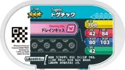 Togetic (Japanese: トゲチック Togechick) is a Grade 3 Pokémon Mezastar tag. It is part of the first Gorgeous Star set.