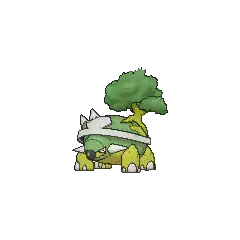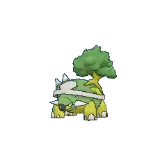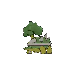 Torterra's large and clean shell supports the lives of many small Pokémon, which occasionally gather and build their nests upon the shell. Some are even born and spend their entire lives there. Torterra migrates in groups, searching for clean water, creating the illusion of moving forests. However, it is typically immobile. Torterra is believed to possess unmatched physical strength. Ancient people believed the ground contained a gigantic Torterra living underneath.