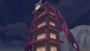 The Tower of Darkness (Japanese: あくの塔Tower of Evil) is a landmark on the Isle of Armor in the Galarregion. It is one of the Towers of Two Fists, and it is where the player goes during The Isle of Armor Expansion Pass if they wish to evolve their Kubfu into a Single Strike StyleUrshifu. This can be achieved by defeating all the Trainers in the tower and having Kubfu examine the Scroll of Darkness on the top floor. The player is only allowed to enter the tower if Kubfu is the only Pokémon in their party. However, if the player doesn't have Kubfu in their party or Box, they can climb the tower with any Pokémon.