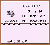 is an Electric-typeglitch Pokémon in Pokémon Red and Blue. It is a hybrid glitch Pokémon of Magnemite and is one of few hybrid glitch Pokémon which actually decompresses the target Pokémon's sprite correctly. It also shares Magnemite's base stats, though not its cry and movepool. Its full name is , preceded by one illegible character. It can be obtained by performing the Time Capsule exploit with Ledian. It becomes ゥ. B when traded to Pokémon Yellow. It is index number 205 and cannot be encountered directly in the wild. If the player performs the Ditto glitch with a special of 205, a Jr. Trainer♂ will appear instead. Its Pokédex entry is two pages long, but the first page makes the whole screen turn white until the A button is pressed.
