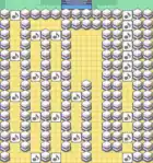 The tower layout in this mode can be recreated in the Japanese version by scanning cards #49-54 in ascending order, then #56, then #55. The last two cards are in reverse order to prevent a bug that exists with the floor layout of card #55, where a player could become trapped by engaging the Trainers in battle and then moving in a particular way afterward.[1]