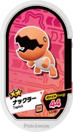 Trapinch (Japanese: ナックラー Nuckrar) is a Grade 2 Pokémon Mezastar tag. It is part of the fifth Double Chain set.