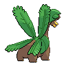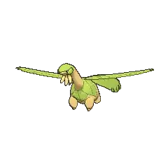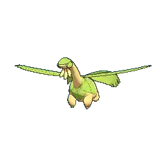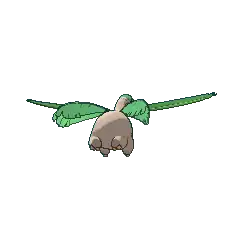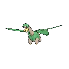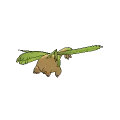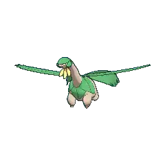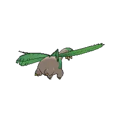 Children of the southern tropics eat as snacks the fruit that grows in bunches around the neck of Tropius. This Pokémon flies by flapping the leaves on its back as if they were wings.