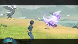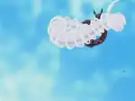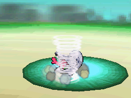 An orb of wind appears in front of the end of Milotic's tail. A tornado is released from the orb and hits the opponent; or, Milotic spins its tailfins like a fan and a tornado comes out at the opponent; or, Milotic floats into the air and starts to spin its body, creating a twister around itself. | ||