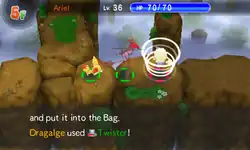 Dragonite creates a tornado by flapping its wings or by spinning its body. The tornado then hits the opponent. | ||