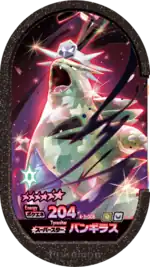Tyranitar (Japanese: バンギラス Bangiras) is a Grade 6 Pokémon Mezastar tag. It is part of the third Gorgeous Star set.