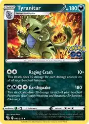 Tyranitar (Japanese: バンギラス Bangiras) is a Darkness-type Stage 2 Pokémon card. It is part of the Pokémon GO expansion.