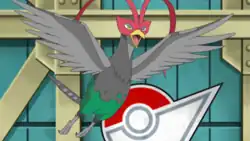 In An Amazing Aerial Battle!, Ash's Tranquill, which he caught as a Pidove, evolved into an Unfezant during a Gymbattle against Skyla and her Swanna. This also marked the animated series debut of Unfezant's female form.