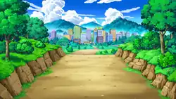 A pastoral road where novice Trainers challenge one another.BW A pastoral road where Trainers challenge one another.B2W2