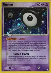 Unown (Japanese: アンノーン Unknown) is a Psychic-type Basic Pokémon card. It is part of the EX Unseen Forces expansion.