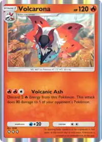 Volcarona (Japanese: ウルガモス Ulgamoth) is a Fire-type Stage 1 Pokémon card in Pokémon Trading Card Game Pocket. It was first released as part of the Mythical Island expansion.