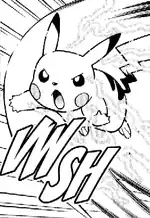 Pikachu's body becomes surrounded by streaks of electricity. It then flies towards the opponent at a high speed and crashes into them. | ||
