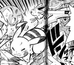 Raichu runs at the opponent. Then, its body becomes surrounded by golden electricity, and it tackles the opponent. While covered in electricity, Raichu's body looks black and white. | ||