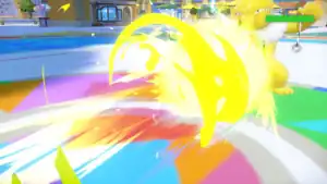 "Pikachu, transformed into a ball of light that can slam into foes. It can also fly to chase down those who try to jump out of range. Sparks get stronger when you press the attack button. However, its increased inertia makes midair movement tough. If you get carried away flying, the effect will end, and you'll destroy yourself. Be careful it doesn't happen to you."