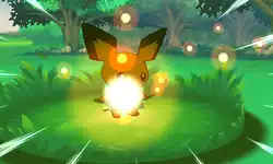 Pichu fires a powerful bolt of electricity from one of its hands, or its body becomes surrounded by streaks of electricity. It then flies towards the opponent at high speed and crashes into them. | ||